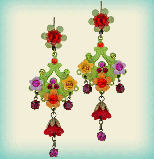 Description: The intricate detailing in this earring catches the eye in a jiffy. The flowers with rounded and pointed petals and stone centers compliment the detailed work done in the earring center. The antique brass-like look creates a classic old-age style which is further enhanced by beautiful stones scattered all over the design. The bell-like tassels dangling to finish the look are accented with adjoining petals and embedded stone. A remarkable piece of artwork!